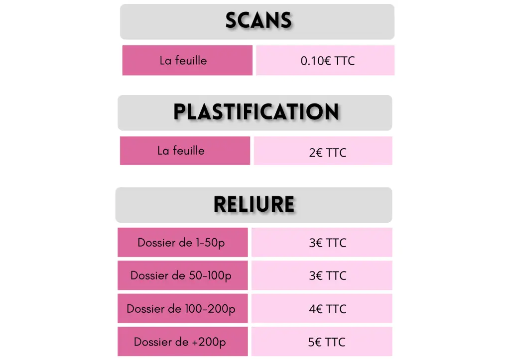 Un service de copies, couleurs ou noir et blanc, impressions et envois de mail/scan, reliure de dossier et plastification de documents vous est proposé chez Calipage Muret.