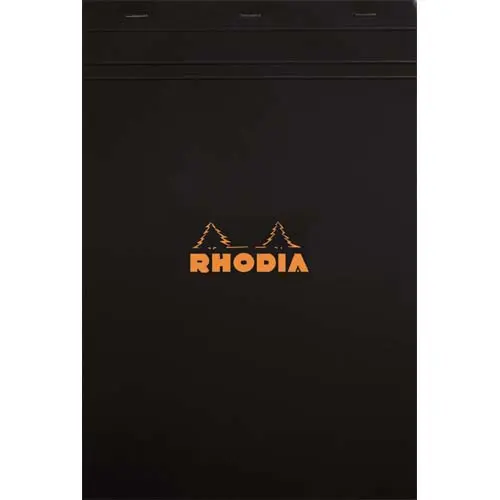 BLOC BUREAU RHODIA A4 PAPIER VÉLIN SURFIN COUVERTURE ENDUITE ENVELOPPANTE 210X297MM 80F DÉTACHABLES 80G 5X5MM NOIR