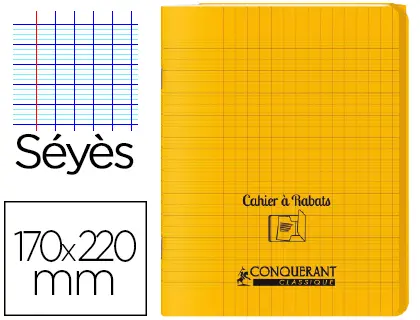 CAHIER À RABAT AGRAFÉ CONQUERANT CLASSIQUE COUVERTURE POLYPROPYLÈNE 17X22CM 48 PAGES 90G SÉYÈS COLORIS JAUNE
