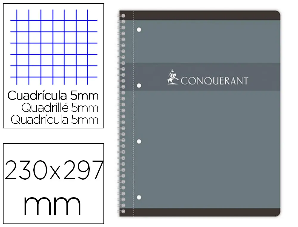 CAHIER CONQUERANT 7 INTEGRALE ET 4TROUS 230X297 160P 70G Q5/5 GRIS