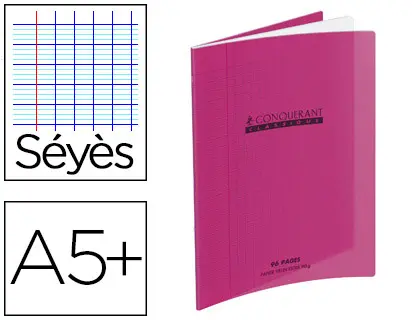 CAHIER PIQUÉ CONQUÉRANT CLASSIQUE COUVERTURE POLYPROPYLÈNE RIGIDE TRANSPARENTE A5+ 17X22CM 60 PAGES 90G SÉYÈS VIOLET
