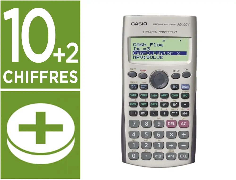 CALCULATRICE CASIO FINANCIÈRE FC-100V ÉCRAN 4 LIGNES FONCTIONS STATISTIQUES SCIENTIFIQUES 161X80X13.7MM 110G
