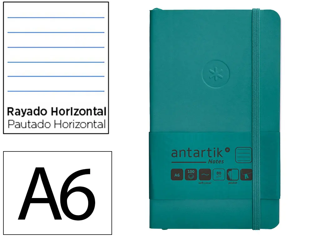 CARNET FERMETURE ELASTIQUE ANTARTIK NOTES COUVERTURE SOUPLE A6 LIGNE 100 FEUILLES 80GR FSC COLORIS VERT PAON