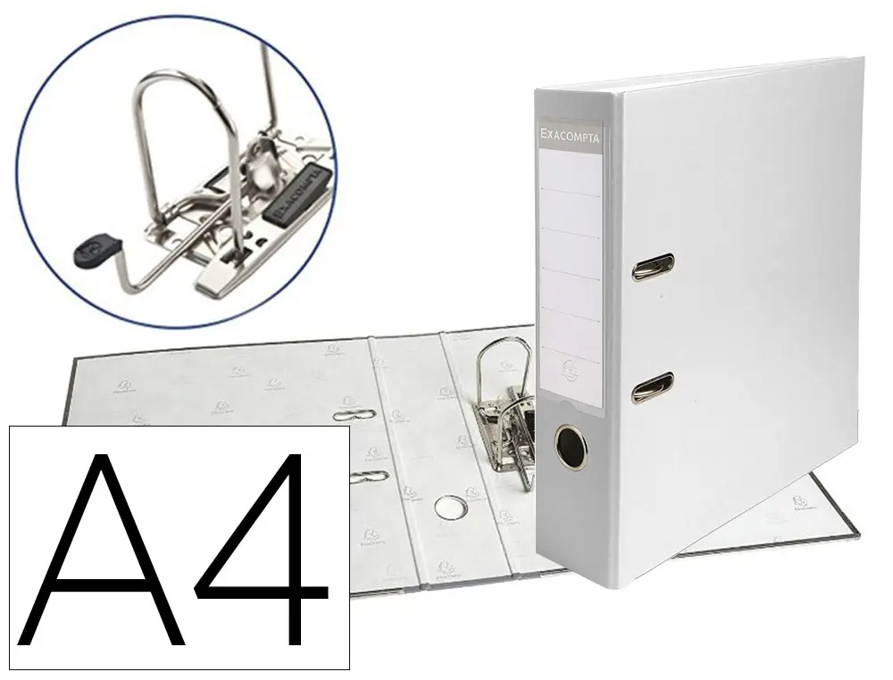 CLASSEUR À LEVIER EXACOMPTA A4 POLYPROPYLÈNE DOS 80MM COLORIS BLANC