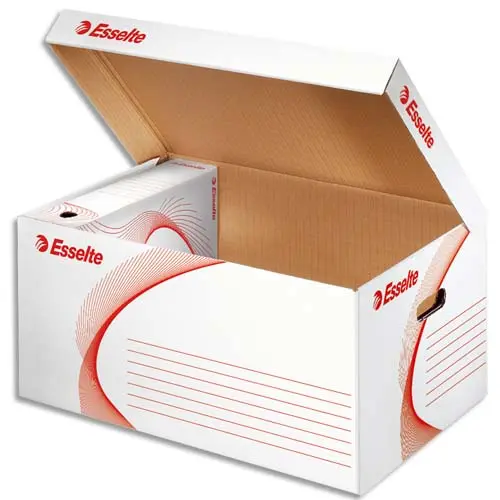 CONTENEUR ESSELTE CARTON ONDULÉ BLANC RECYCLABLE TAILLE L 365X255X550MM 5/6 BOÎTES COUVERCLE RABATTABLE OUVERTURE DESSUS