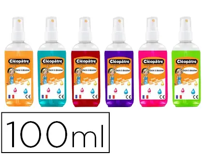 ENCRE À DESSINER CLÉOPÂTRE VAPORISATEUR RECHARGEABLE COLORIS ORANGE TURQUOISE CARMIN VIOLET ROSE ET VERT 100ML LOT 6U