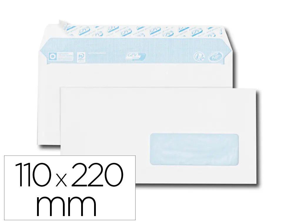 ENVELOPPE GPV EVERYDAY BLANCHE 80G DL 110X220MM FENETRE 35X100MM FERMETURE SECURISEE COLLAGE RENFORCE BOITE 500 UNITES