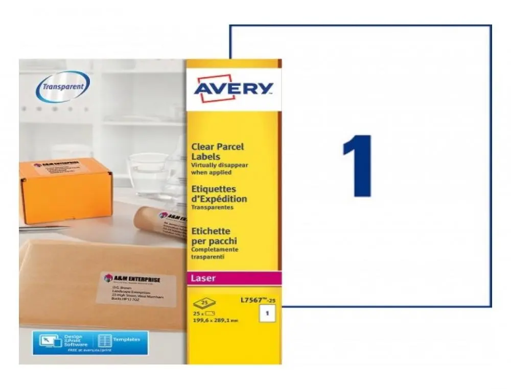 ETIQ.LASER 21X29.7 INV. L75672ETIQUETTE TRANSPARENTE LASER – AVERY – 210X297MM – 25 FEUILLES