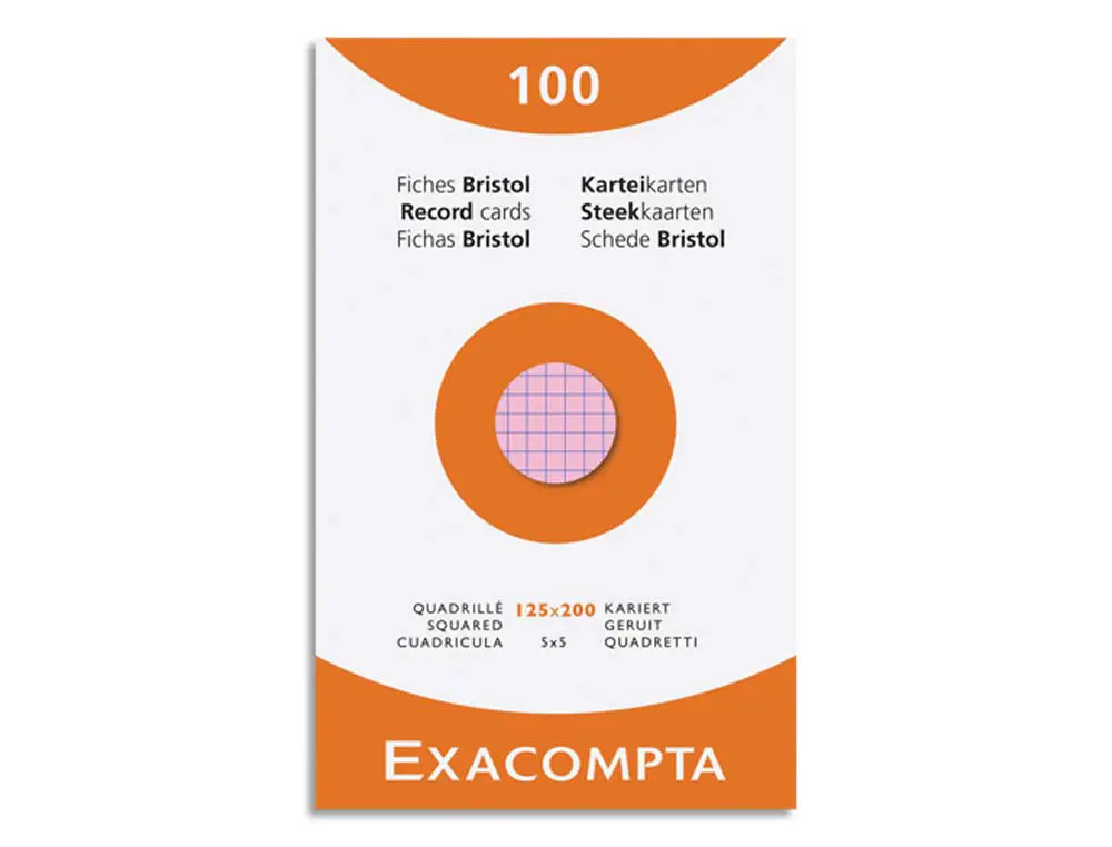 ETUI 100 FICHES EXACOMPTA BRISTOL QUADRILLEE 5X5 NON PERFOREE ASSORTIS 125X200MM