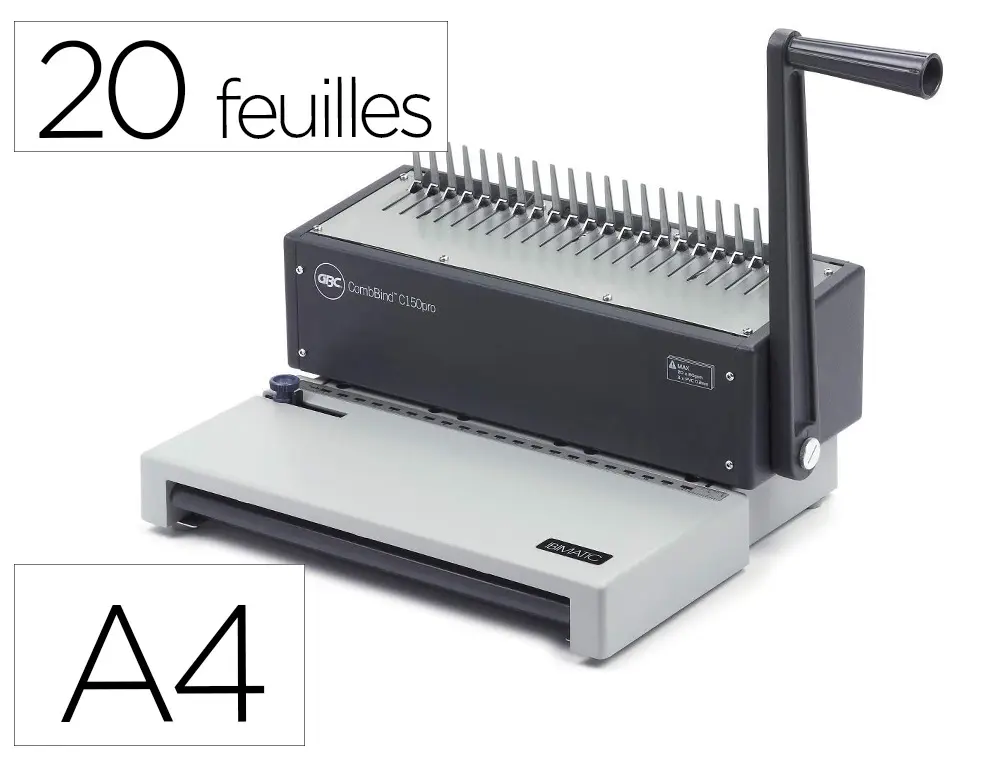 MACHINE A RELIER GBC COMBBIND C150 PRO MANUELLE FORMAT A4 CAPACITE PERFORATION 20 FEUILLES CAPACITE RELIURE 450