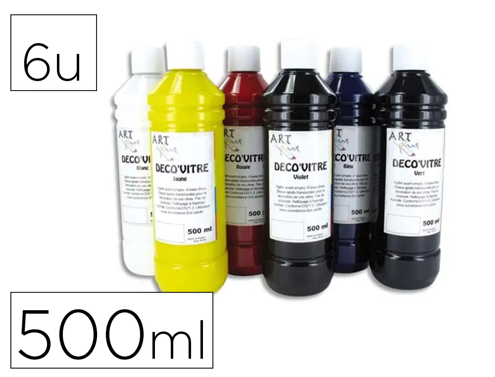 PEINTURE LIQUIDE O’COLOR DECO VITRE 500ML COLORIS ASSORTIS COFFRET 6 BOUTEILLES