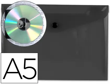 POCHETTE ENVELOPPE LIDERPAPEL POLYPROPYLÈNE 180 MICRONS A5 210X148MM 50F FERMETURE BOUTON RÉSISTANT TRANSPARENT NOIR