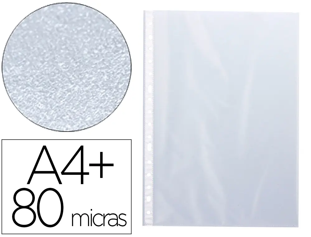 POCHETTE Q-CONNECT POLYPROPYLENE GRAINE PERFOREE FOLIO 80 MC SACHET 10 UNITES