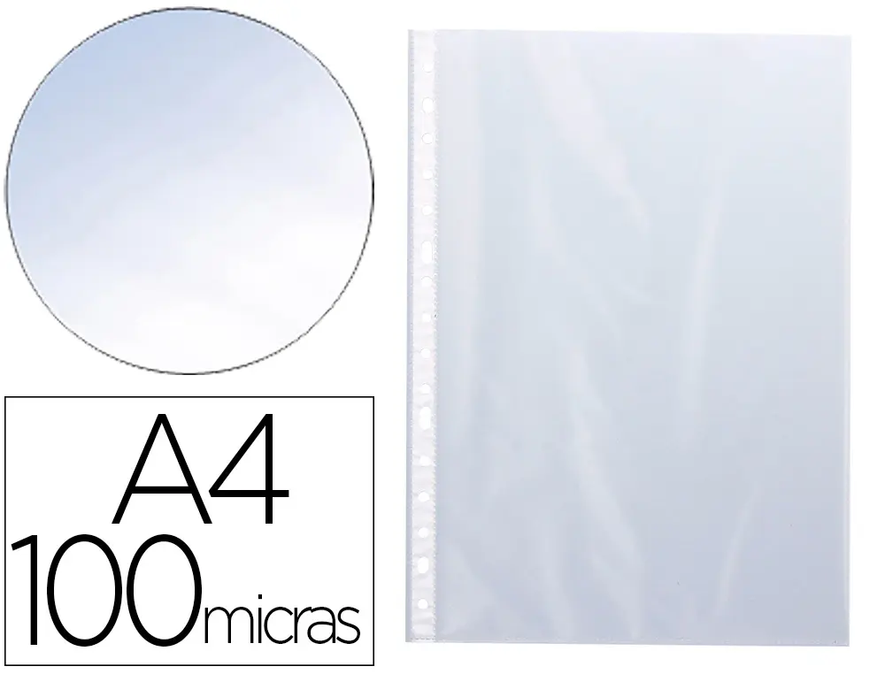 POCHETTE Q-CONNECT POLYPROPYLÈNE LISSE 10/100E PERFORÉE CRISTAL 11 TROUS A4 210X297MM SACHET 10U