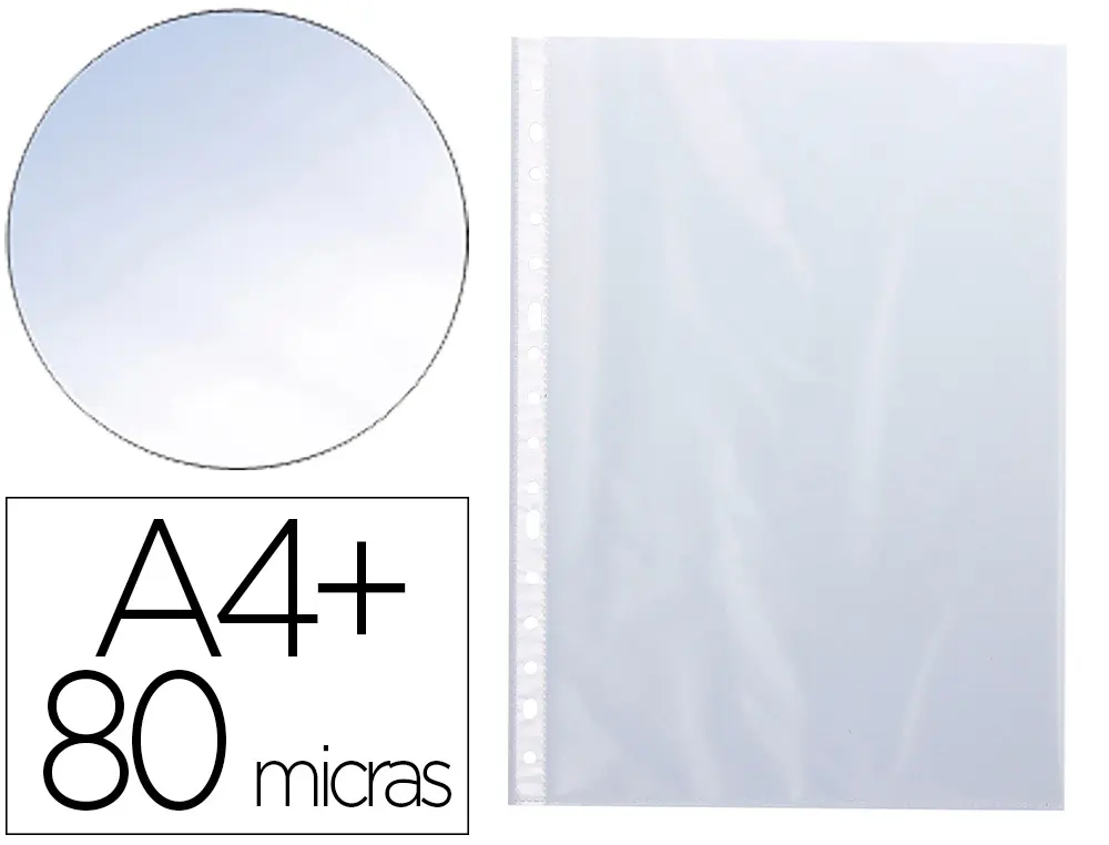 POCHETTE Q-CONNECT POLYPROPYLENE LISSE PERFOREE FOLIO 80 MC CRISTAL SACHET 10 UNITES