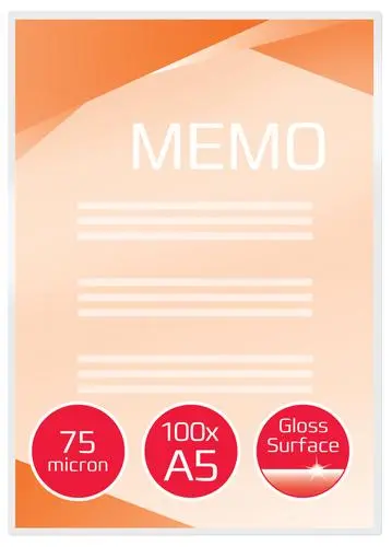 POCHETTES PLASTIFICATION GBC 148X110CM 75 MICRONS FORMAT A5 BOITE DE 100 UNITES