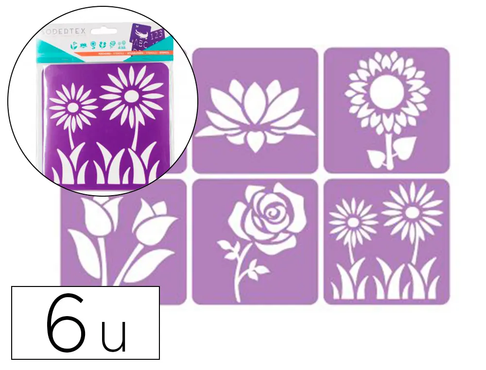 POCHOIRS SODERTEX MON JARDIN BOTANIQUE EN PLASTIQUE INCASSABLE 5MM 140X140MM 6 PCS COLORIS ASSORTI