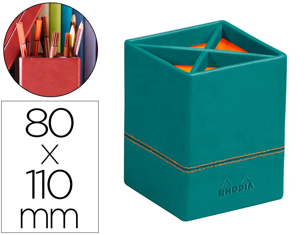POT CRAYONS RHODIARAMA QUATRE COMPARTIMENTS EN SIMIL CUIR PAON VELOUT 8X8X11CM