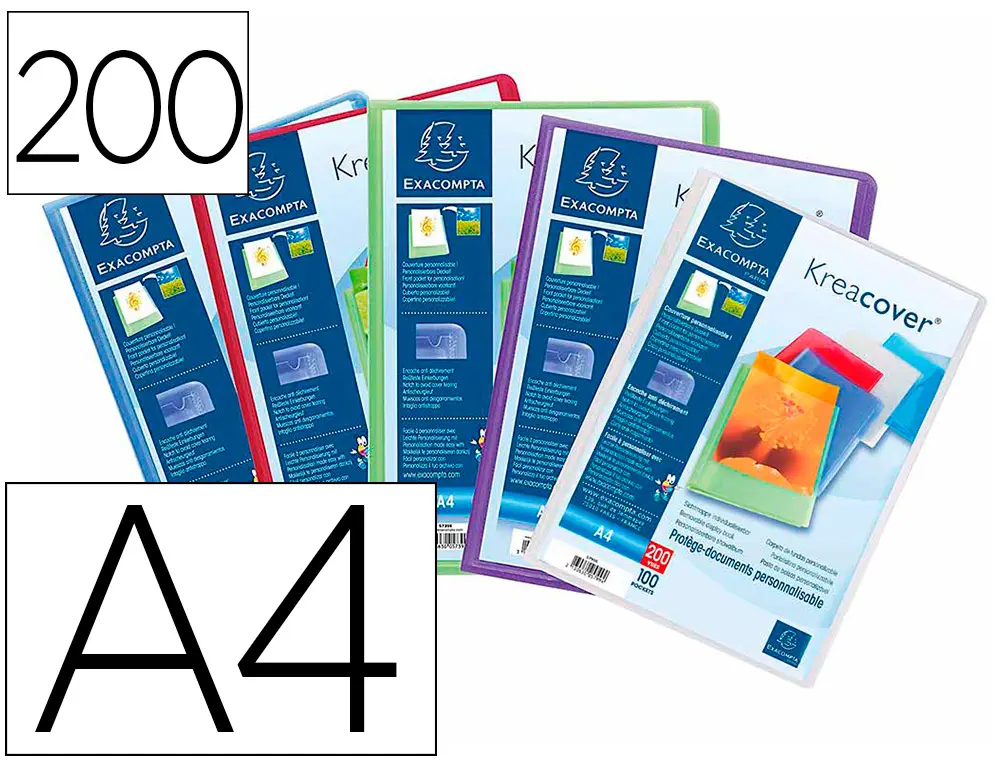 PROTEGE-DOCUMENTS PERSONNALISABLE EXACOMPTA POLYPROPYLENE SEMI-RIGIDE 24X32CM 200 VUES COLORIS