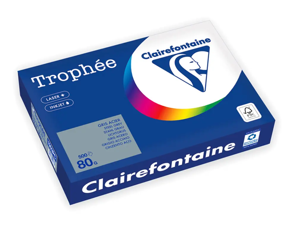 RAMETTE CLAIREFONTAINE PAPIER COULEUR A4 80G 500 FEUILLES COLORIS GRIS ACIER