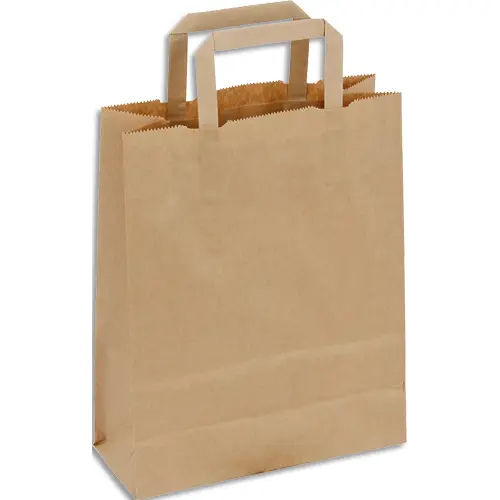 SAC KRAFT 70G/M2 POIGNEES PLATES 18X8X22CM PAQUET 50 UNITES COLORIS BRUN 20025