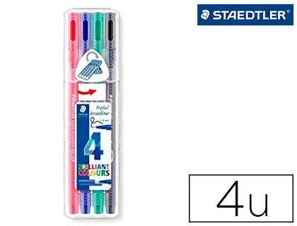 STYLO-FEUTRE STAEDTLER TRIPLUS BROADLINER 338 ÉCRITURE ET COLORIAGE POINTE MOYENNE 0.8MM ENCRE DRY SAFE ÉTUI 4 UNITÉS